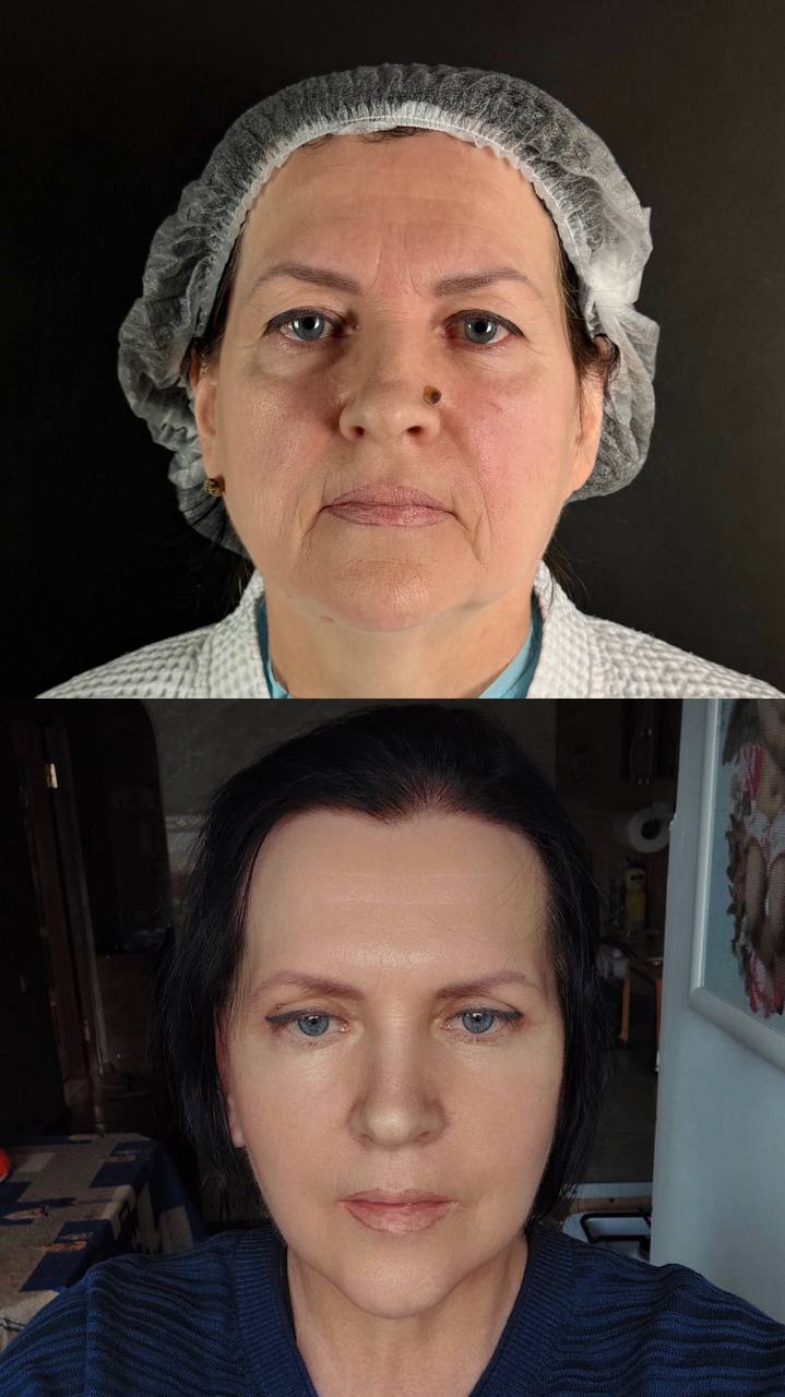 Подтяжка лица с медиальной платизмопластикой, малярный липолиз и верхние веки (+ удаление родинки)